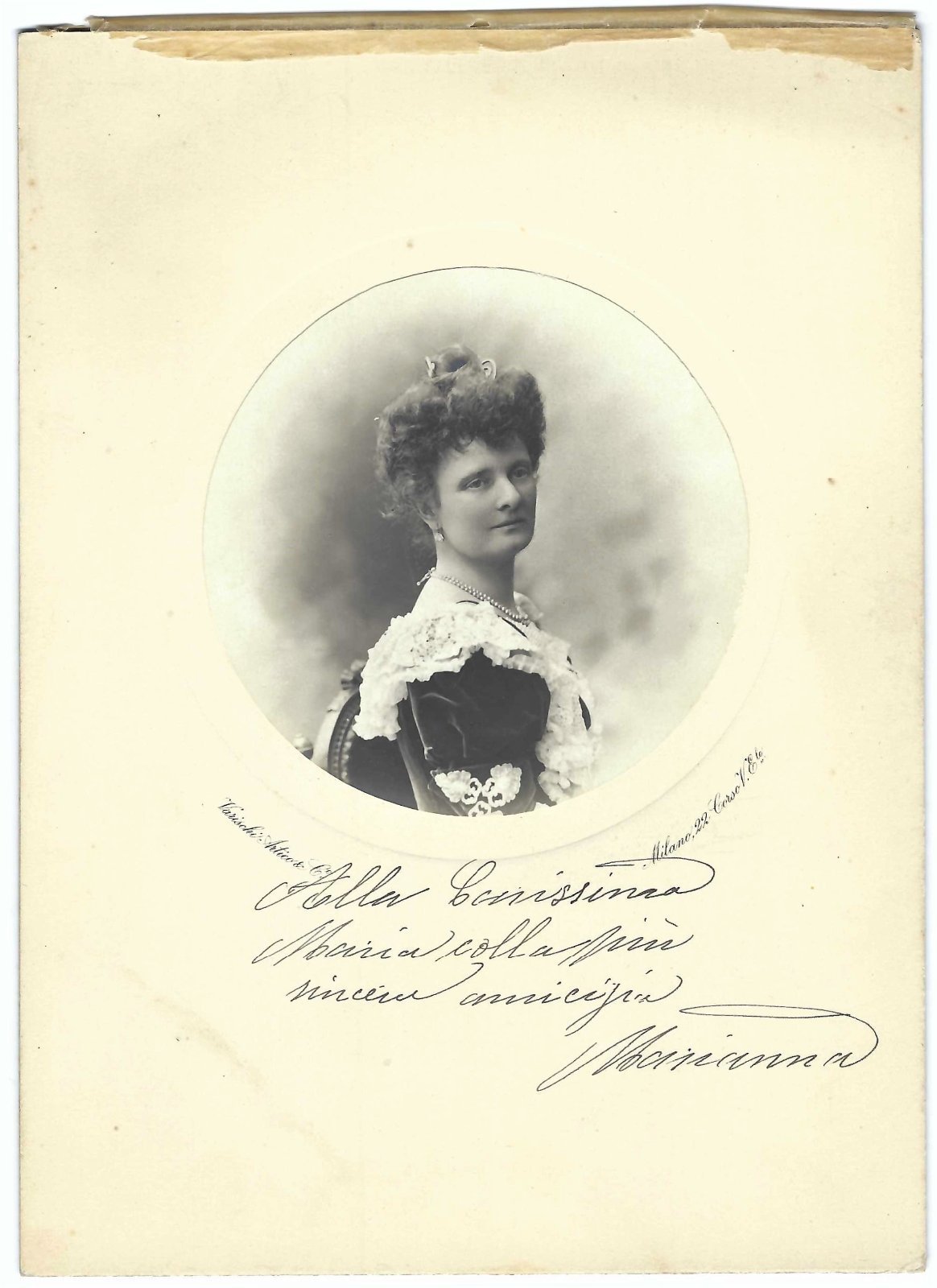 Foto photo ritratto di gentildonna in tondo by Varischi e Artico Milano 1900 c.a.