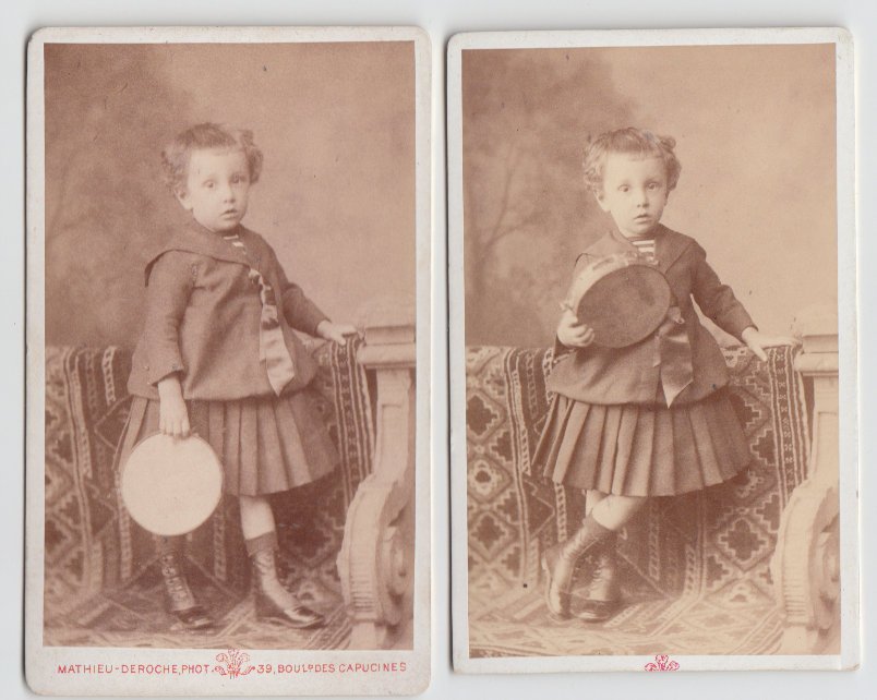 Foto photo ritratto di Jean con tamburello e vestito alla marinara by Mathieu Deroche Paris cdv 1885