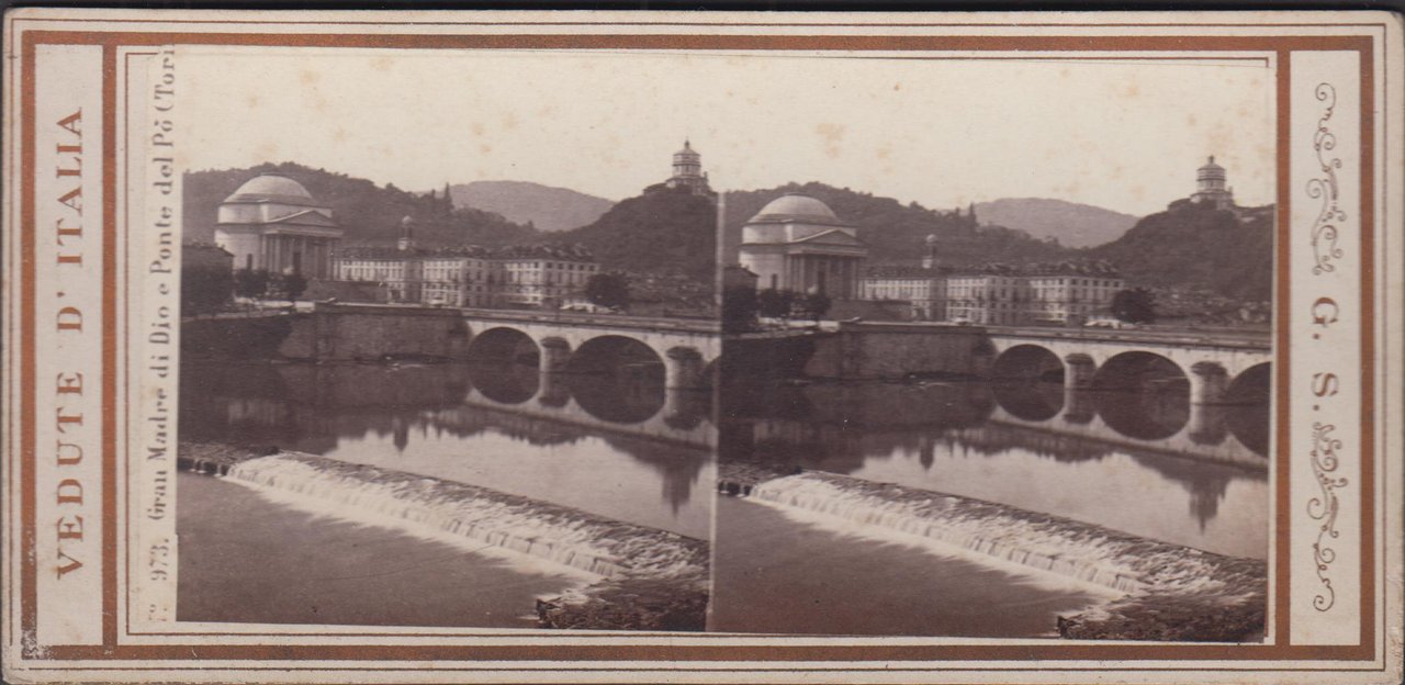 Foto photo stereoscopica chiesa Gran Madre di Dio e Ponte del Po Torino by Sommer 1890 c.a.