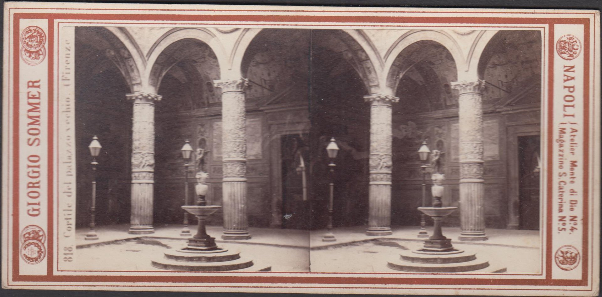 Foto photo stereoscopica cortile di Palazzo Vecchio Firenze by Sommer 1890 c.a.