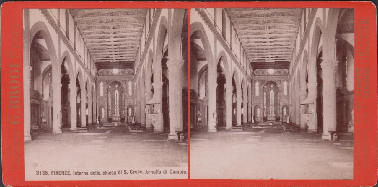 Foto photo stereoscopica interno Chiesa di S. Croce Firenze by Brogi 1890 c.a.