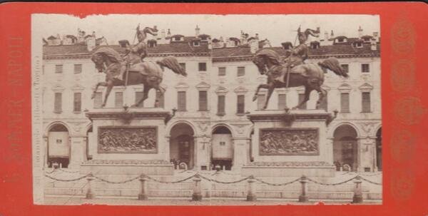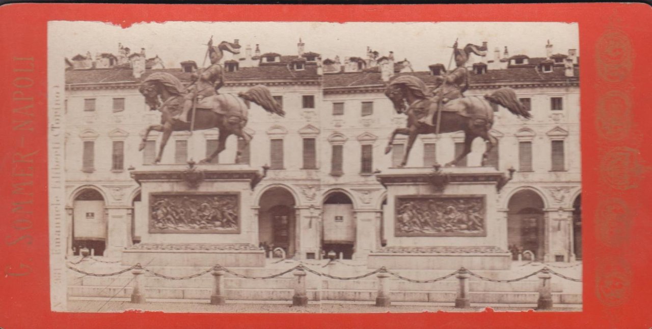 Foto photo stereoscopica monumento Emanuele Filiberto Torino by Sommer 1890 c.a.