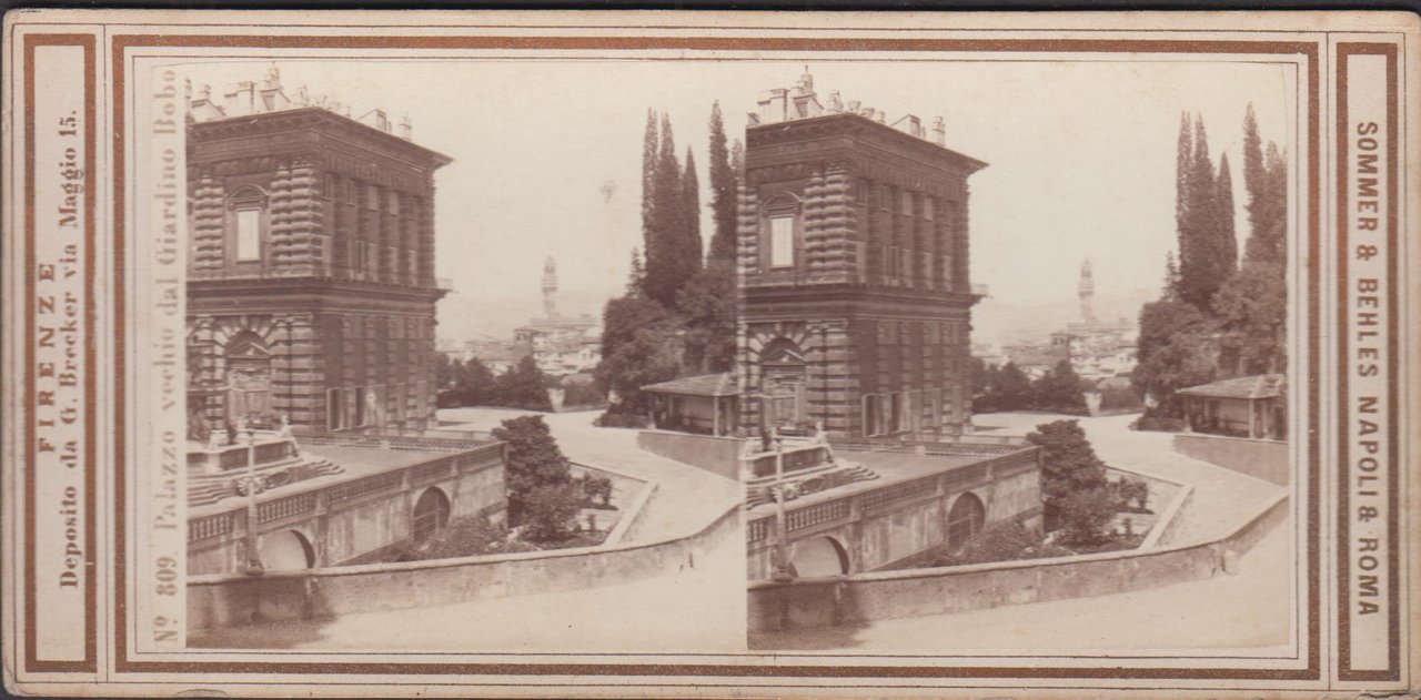 Foto photo stereoscopica Palazzo Vecchio da giardino Boboli Firenze by Sommer & Behles