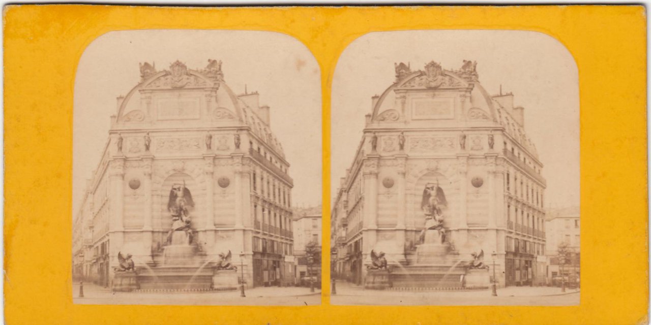Foto photo stereoscopica stereoview Fontaine St Michel Paris By Anonimo 1880 c.a.