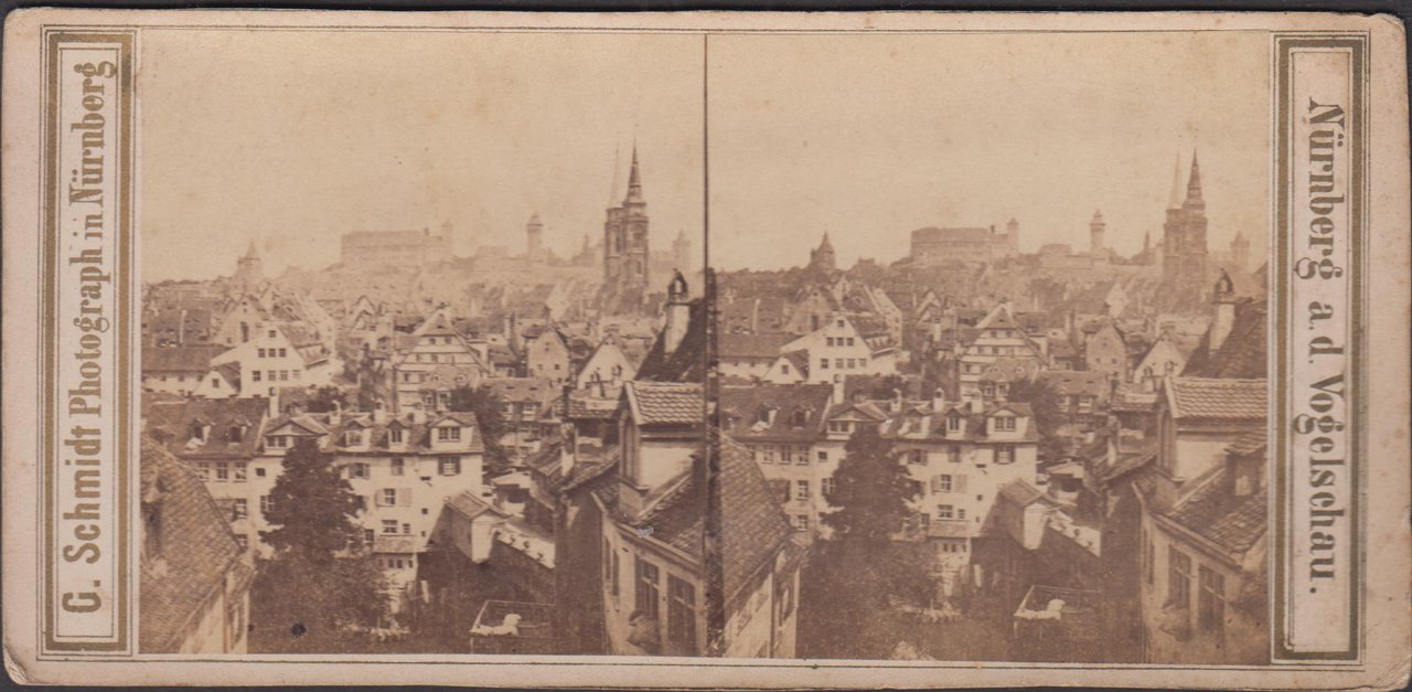 Foto photo stereoscopica stereoview Norimberga Nurnberg a volo d'uccello by G. Scmidt 1880 c.a