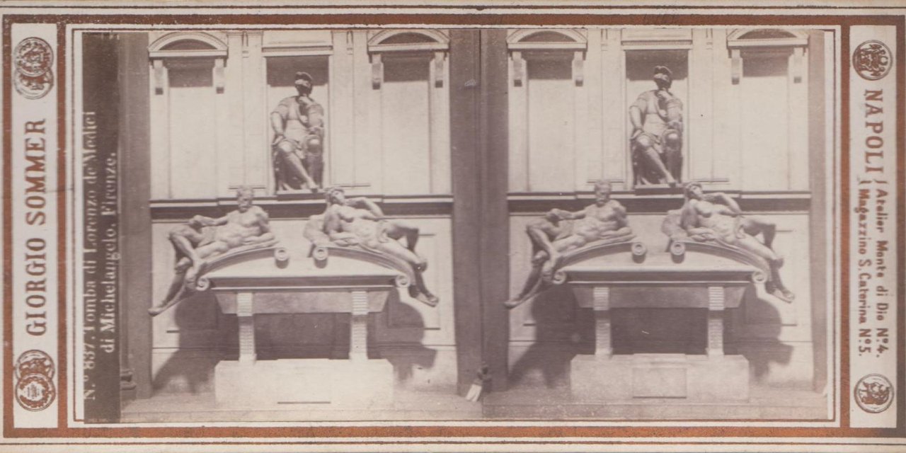Foto photo stereoscopica Tomba di Lorenzo de Medici Michelangelo Firenze by Sommer 1890 c.a.