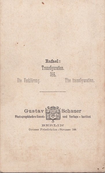 Foto photo trasfigurazione di Raffaello by Gustav Schauer Berlin cdv 1880 c.a.