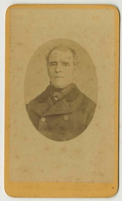 Stampa fotografica all'albumina di misure 93x56 mm montata su cartoncino di misure 104x61 mm. Condizioni : USATO - Stato : Buono, ordinari segni d'uso e del tempo. Altre note : Fotografia raffigurante il ritratto a mezzo busto di un signore.