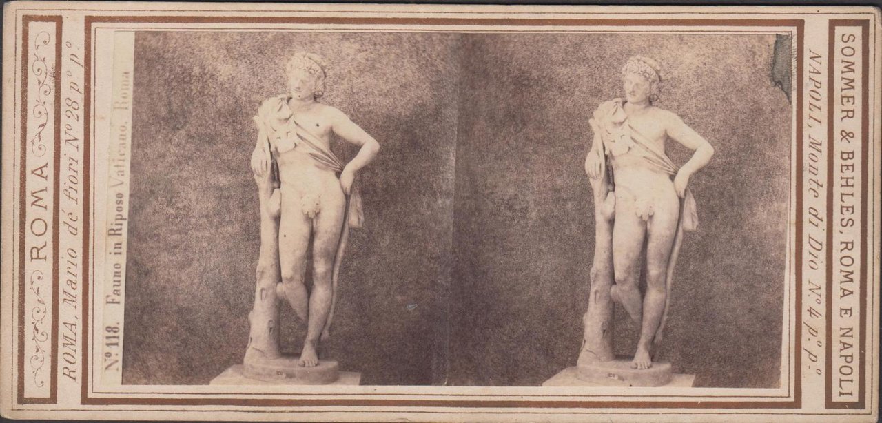 Foto stereoscopica Fauno in riposo Vaticano Roma by Sommer & Behles 1890 c.a.