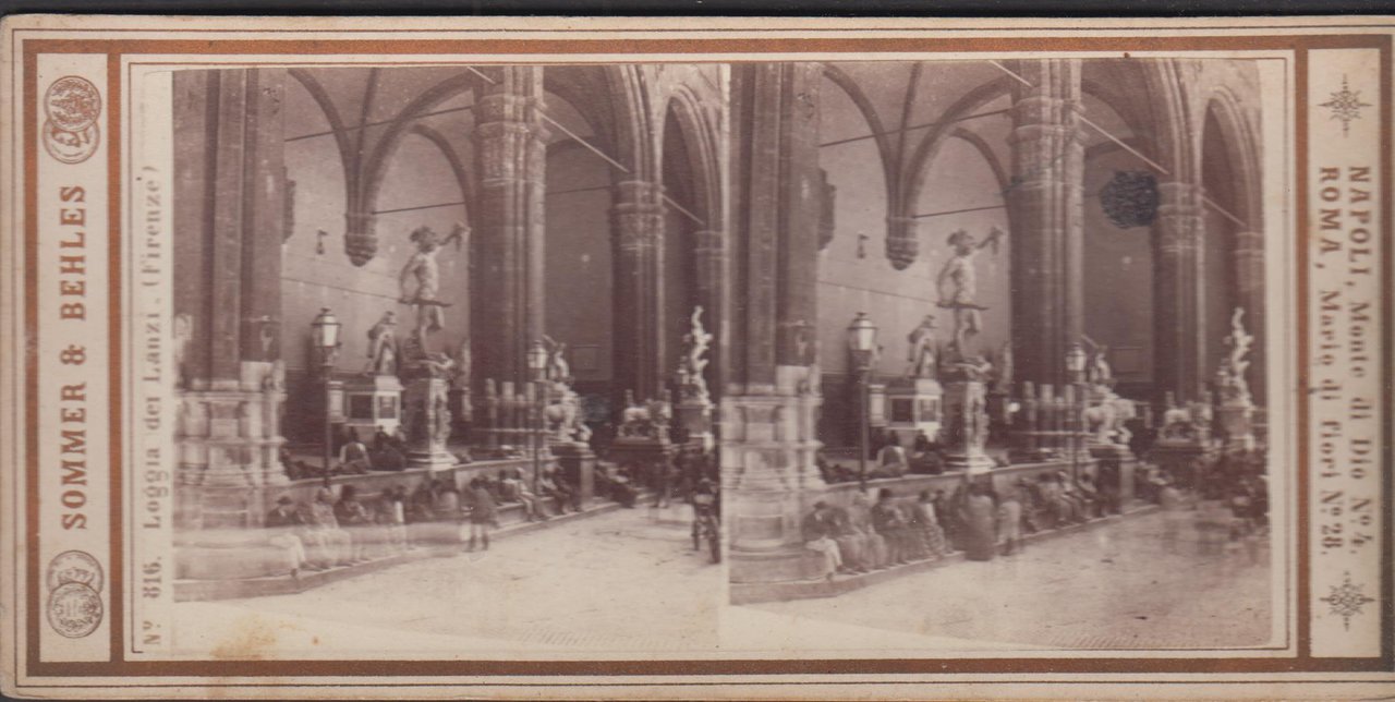 Foto stereoscopica Loggia dei Lanzi Firenze by Sommer & Behles 1890 c.a. II