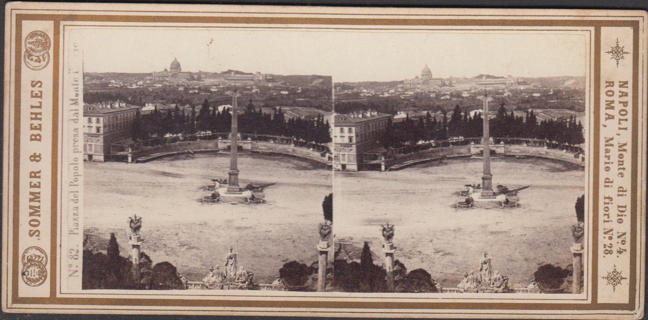 Foto stereoscopica Piazza del Popolo presa dal monte Pincio Roma by Sommer 1890 c.a.