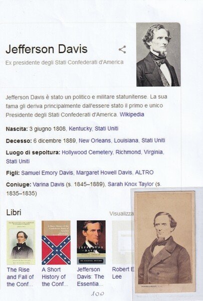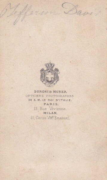 Fotografia originale all'albumina JEFFERSON DAVIS. Duroni & Murer - Paris e Milan.