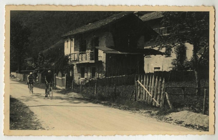 Cartolina postale fotografica di misura 135x83 mm con griglia al verso. Condizioni : USATO - Stato : Buono, ordinari segni d'uso e del tempo. Altre note : Fotografia scattata durante il Giro della Bolghera nel 1938. Nell'immagine sono ritratti i ciclisti durante la gara.