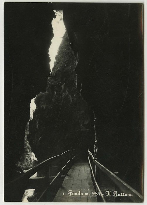 Cartolina postale fotografica alla gelatina di misure 148x103 mm con griglia al verso. Condizioni : USATO - Stato : Buono, ordinari segni d'uso e del tempo. Altre note : Fotografia raffigurante il burrone di Fondo attraversato da un ponte di legno. Cartolina viaggiata a Diano Marina con francobollo e timbro dell'ufficio postale di Fondo. Al verso note manoscritte e altri timbri.