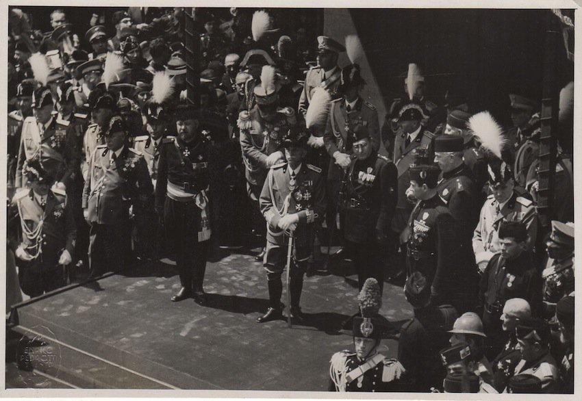 Il Re a Trento in mezzo ad un gruppo di fascisti.