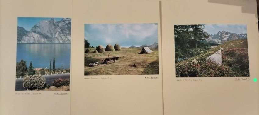 Cartella di 9 immagini fotografiche su carta. Ciascuna misura cm 31x22 ed è montata su cartoncino di cm 49x41. Ogni immagine porta in basso a sinistra il titolo e in basso a destra la firma "F.lli Pedrotti". All'interno della cartella si trova anche un doppio foglio con testo in tedesco di presentazione dell'opera e i titoli delle immagini. Condizioni : USATO - Stato : Buono, ordinari segni d'uso e del tempo. Altre note : La cartella, originariamente formata da dieci immagini, risulta mancante dell'ultima denominata "Königsspitze".