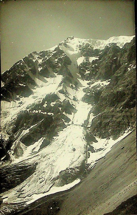 Stampa alla gelatina ai sali d'argento di misure 14x9 cm. Condizioni : USATO - Stato : Buono, ordinari segni d'uso e del tempo. Altre note : Eugenio Dalla Fior nasce a Trento il 12 giugno 1891, secondogenito di una famiglia legata all'ambiente filoitaliano, che caratterizza parte della classe dirigente locale a cavallo fra Ottocento e Novecento. Frequenta l'Imperial Regio Ginnasio di Trento e poi si iscrive alla facoltà di medicina di Torino dove si laurea nel 1916. Allo scoppio della guerra si arruola volontario nell'esercito italiano per prestare servizio negli ospedali militari posti lungo la linea del fronte. Alla fine del conflitto assume la condotta medica di Cles, dove opera generosamente fino al 1951. Per motivi di salute si sposta poi a Riva. Qui muore il 31 dicembre del 1956. La passione per le montagna inizia molto presto, assieme ad un gruppo di amici, che comprende Camillo Marchi, Vittorio Fabbro, Giuseppe Cristofolini, Ettore Grassi, Mite Ghezzer, Lino Vois, Francesco Lot, si avventura sulle Dolomiti di Brenta e di San Martino di Castrozza, fra le rocce della Presanella e i ghiacci dell'Adamello, sulle cime dell'Ortles e del Cevedale, nel Gruppo del Catinaccio e sulla Marmolada, sulle guglie della Valle di Fassa e della Val Gardena. Amico di Guido Rey, per due volte si spingerà anche in Val d'Aosta, per salire le grandi montagne e ammirare la meraviglia del paesaggio alpino.