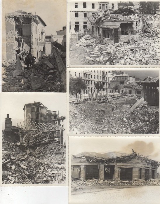 Lotto di 18 stampe alla gelatina ai sali d'argento di misure 127x175 mm. Condizioni : USATO - Stato : Buono, ordinari segni d'uso e del tempo. Altre note : Lotto di 18 fotografie che ritraggono Levico distrutta dai bombardamenti della seconda guerra mondiale. Si vedono le case rase al suolo oppure pericolanti, cumuli di macerie e alcune abitazioni ancora integre. L'editore si evince dall'unica fotografia stampata su carta lucida che presenta un timbro a secco in basso a destra.