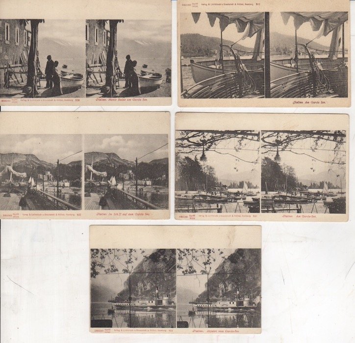 Lotto di 5 cartoline stereoscopiche del Lago di Garda: