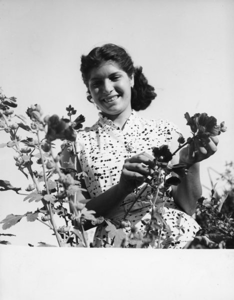 Foto in buono stato di dimensioni 18x24 probabilmente usata per diffondere l'immagine delle lavoratrici nel periodo della riforma fondiaria nel Mezzogiorno