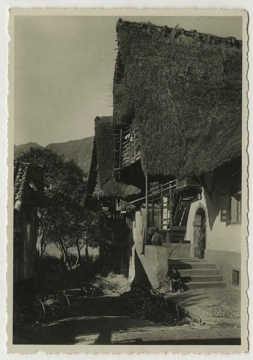 Cartolina postale fotografica alla gelatina di misure 152x106 mm con griglia al verso. Condizioni : USATO - Stato : Buono, ordinari segni d'uso e del tempo. Altre note : Fotografia raffigurante una stradina costeggiata da delle case di paese: all'ingresso di un'abitazione alcuni bambini.