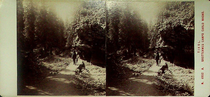 Veduta stereoscopica con due stampe all'albumina di misure 72x76 mm applicate su cartoncino di misure 177x88 mm. Condizioni : USATO - Stato : Buono, ordinari segni d'uso e del tempo. Altre note :