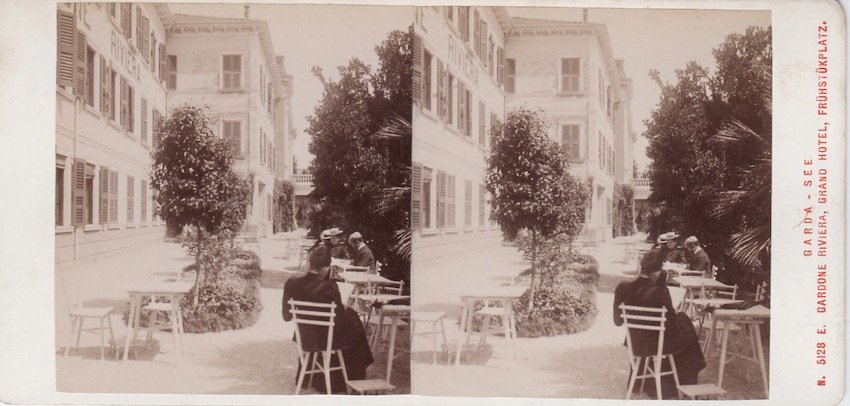 Veduta stereoscopica con due stampe all'albumina di misure 72x76 mm applicate su cartoncino di misure 177x88 mm. Condizioni : USATO - Stato : Buono, ordinari segni d'uso e del tempo. Altre note :