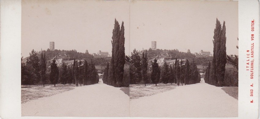 Veduta stereoscopica con due stampe all'albumina di misure 72x76 mm applicate su cartoncino di misure 177x88 mm. Condizioni : USATO - Stato : Buono, ordinari segni d'uso e del tempo. Altre note :