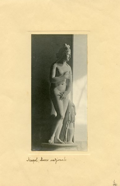 Foto di dimensioni 10x20 incollata su cartoncino. Scritto con inchiostro il riferimento alla collocazione della statua