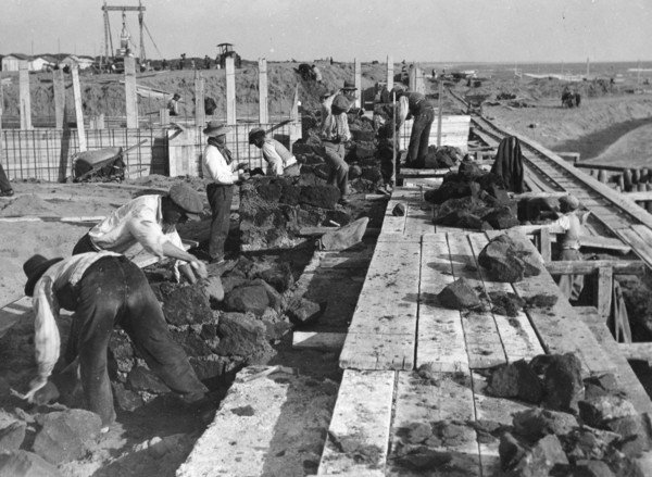 Ostia, costruzione del ponte che collega il Lido di Ostia a Castel Fusano