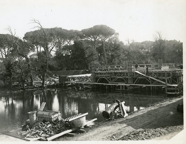 Ostia. Tenuta di Castel Fusano, lavori per la costruzione di un ponte
