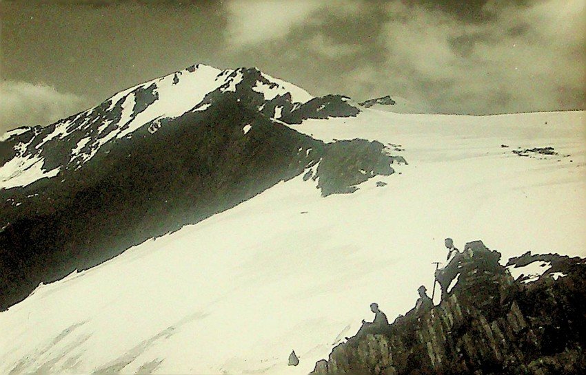 Stampa alla gelatina ai sali d'argento di misure 14x9 cm. Condizioni : USATO - Stato : Buono, ordinari segni d'uso e del tempo. Altre note : Eugenio Dalla Fior nasce a Trento il 12 giugno 1891, secondogenito di una famiglia legata all'ambiente filoitaliano, che caratterizza parte della classe dirigente locale a cavallo fra Ottocento e Novecento. Frequenta l'Imperial Regio Ginnasio di Trento e poi si iscrive alla facoltà di medicina di Torino dove si laurea nel 1916. Allo scoppio della guerra si arruola volontario nell'esercito italiano per prestare servizio negli ospedali militari posti lungo la linea del fronte. Alla fine del conflitto assume la condotta medica di Cles, dove opera generosamente fino al 1951. Per motivi di salute si sposta poi a Riva. Qui muore il 31 dicembre del 1956. La passione per le montagna inizia molto presto, assieme ad un gruppo di amici, che comprende Camillo Marchi, Vittorio Fabbro, Giuseppe Cristofolini, Ettore Grassi, Mite Ghezzer, Lino Vois, Francesco Lot, si avventura sulle Dolomiti di Brenta e di San Martino di Castrozza, fra le rocce della Presanella e i ghiacci dell'Adamello, sulle cime dell'Ortles e del Cevedale, nel Gruppo del Catinaccio e sulla Marmolada, sulle guglie della Valle di Fassa e della Val Gardena. Amico di Guido Rey, per due volte si spingerà anche in Val d'Aosta, per salire le grandi montagne e ammirare la meraviglia del paesaggio alpino.