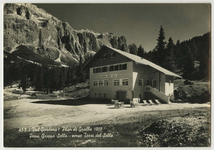 Cartolina postale fotografica alla gelatina di misure 149x104 mm con griglia al verso. Condizioni : USATO - Stato : Buono, ordinari segni d'uso e del tempo. Altre note : Fotografia raffigurante il Plan de Gralba: in primo piano la pensione gruppo Sella. Cartolina viaggiata a Diano Marina con due francobolli e timbro dell'ufficio postale di Selva di Val Gardena. Al verso note manoscritte e timbro della pensione gruppo Sella.