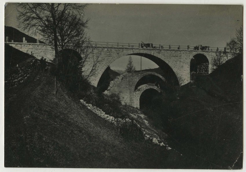 Cartolina postale fotografica di misura 150x105 mm con griglia al verso. Condizioni : USATO - Stato : Buono, ordinari segni d'uso e del tempo. Altre note : Fotografia raffigurante il Ponte sul Forego (Rio Lavesòl). Cartolina viaggiata a Diano Marina con francobollo e due timbri dell'ufficio postale di Cavedago. Al verso note manoscritte.