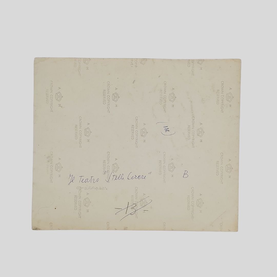 Fotografia originale, gelatina ai sali d’argento, mm 230×190, stampa fotografica degli anni ’40 da antica fotografia di fine ‘800. In primo piano “venditrice di castagne”, sullo fondo “scugnizzi” in attesa dello spettacolo. Al verso didascalia a biro. Tracce d’uso. Non comune. Lo Stella Cerere, il più antico teatro di marionette napoletano (risale al Settecento), sorgeva in piazza del Carmine vicino ad un altro teatro, il Silfide, che aveva sede nell’androne di uno storico palazzo (da poco ristrutturato) della stessa piazza e che aprì i battenti 22 giugno 1822 sotto la gestione di Donna Peppa, Giuseppa Errico, moglie di Salvatore Petito e madre di Antonio, celebre Pulcinella. A partire dal 1828, anche lo Stella Cerere, sarebbe stato gestito da Donna Peppa. Lo Stella Cerere si spostò in varie sedi ed ebbe grande successo specialmente fra il 1854 e il 1884. Il teatro sarebbe diventato “di pupi” solo dopo la morte di Donna Peppa (1867) e il passaggio di gestione a Don Giovanni De Simone detto “’o masto” per la sua abilità, ex attore del teatrino di Donna Peppa e poi capo di una troupe di “pupanti” . Nel 1875 il De Simone aprì un suo teatrino di pupi in via della Marina riprendendo il nome di “Stella Cerere”. [cfr. Valentina Venturini (a cura di) Dal Cunto all’Opera dei pupi. Il teatro di Cuticchio, Roma, Dino Audino, 2003, pp. 144]
