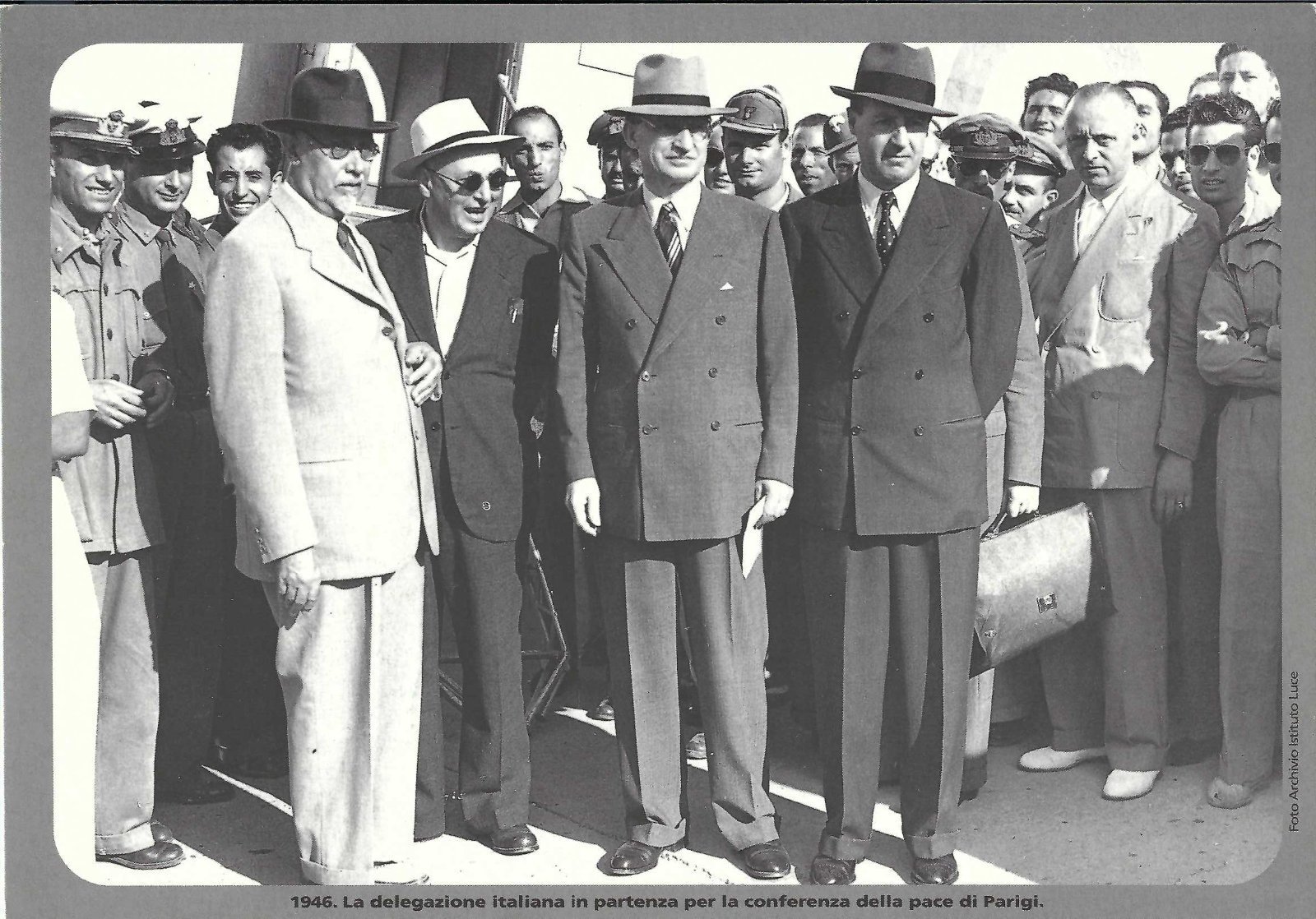 Riproduzione foto archivio Istituto luce 1946 la delegazione italiana in partenza per la conferenza di pace di Parigi