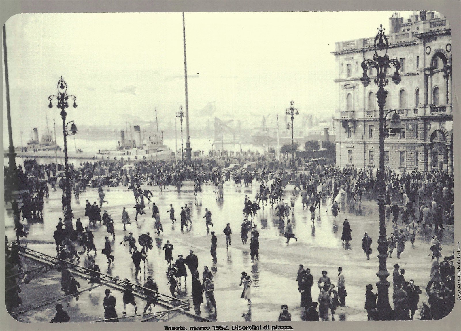 Riproduzione foto archivio Istituto luce Trieste marzo 1952 disordini in piazza