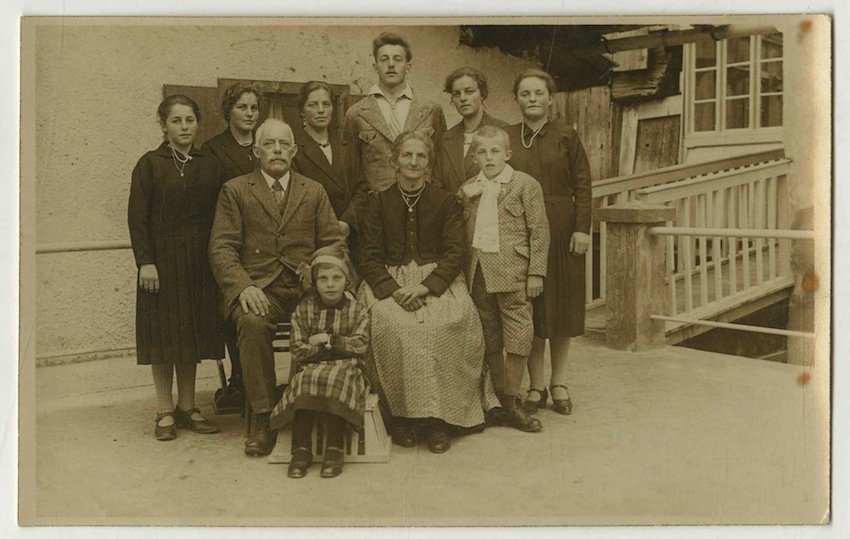 Cartolina postale fotografica di misura 140x88 mm con griglia al verso. Condizioni : USATO - Stato : Buono, ordinari segni d'uso e del tempo, al verso macchie. Altre note : Fotografia che ritrae la Famiglia Luigi in posa per lo scatto fotografico. Al verso note manoscritte.