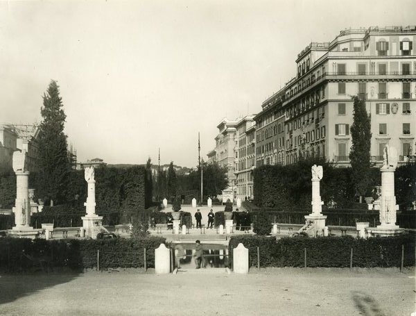 Bella foto in buono stato di dimensioni 18x24 che documenta la realizzazione del giardino da parte dell'architetto De Vico