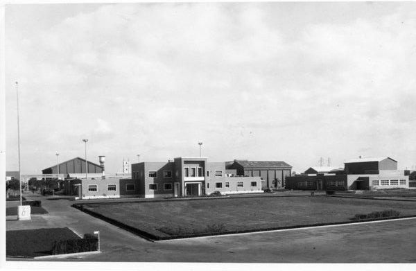 Foto in buono stato di dimensioni 18x15. la foto ritrae il piazzale antistante l'entrata degli studi cinematografici di Cinecittà