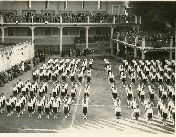 Serie di 5 foto in buono stato di dimensioni 18x24 che testimonia gli esercizi ginnici in una scuola romana