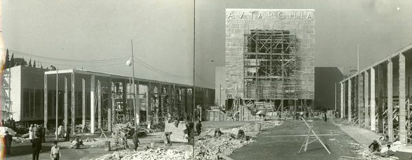 Foto in buono stato di dimensioni 18x13. che documenta la veduta panoramica di una mostra della Ricostruzione delle Cave di Carrara.
