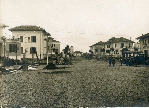 Foto in buono stato di dimensioni 18x25. Rara documentazione sull'edificazione di Città Giardino, esempio di sperimentazione urbanistica di un quartiere modello