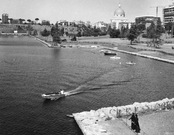 Foto in buono stato di dimensioni 18x24. Il laghetto doveva essere realizzato per l'Esposizione Universale del 1942, e infatti fu progettato nel 1937, ma la sua realizzazione avvenne in occasione dei Giochi Olimpici del 1960