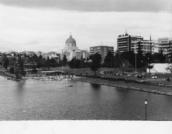 Foto in buono stato di dimensioni 18x24. Il laghetto doveva essere realizzato per l'Esposizione Universale del 1942, e infatti fu progettato nel 1937, ma la sua realizzazione avvenne in occasione dei Giochi Olimpici del 1960