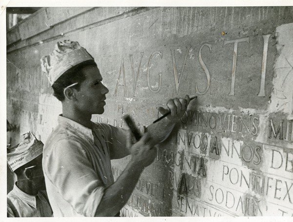 Roma settembre 1938 Lavori per l'inugurazione dell'Ara Pacis riedificata