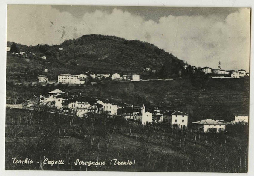 Cartolina postale fotografica alla gelatina di misure 146x100 mm con griglia al verso. Condizioni : USATO - Stato : Buono, ordinari segni d'uso e del tempo. Altre note : Veduta di tre frazioni di Civezzano: Torchio, Cogatti e Seregnano. Cartolina viaggiata a Diano Marina con francobollo e timbro dell'ufficio postale di Trento. Al verso note manoscritte.