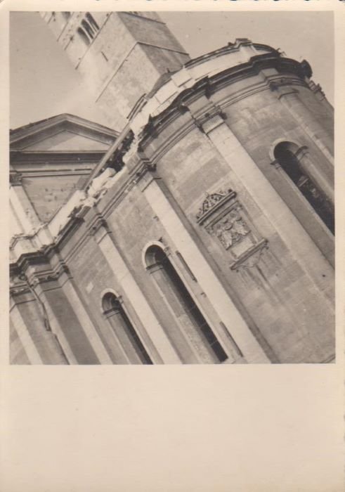 Trento - Esterno della Chiesa di S. Maria Maggiore colpita da un caccia il I/1/1945.