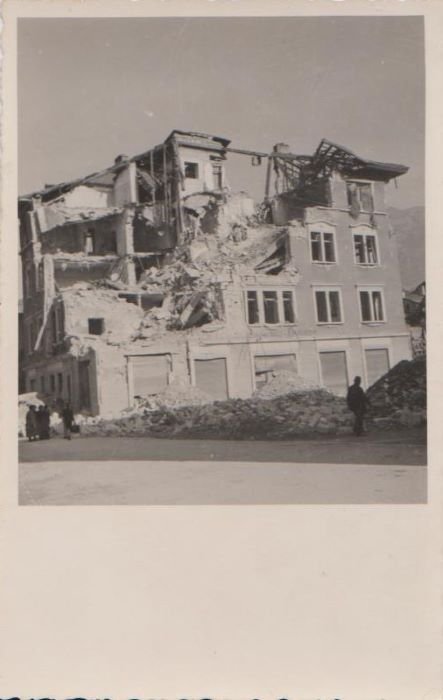 Trento - Il palazzo della cassa malati colpita col bombardamento del 2 settembre 1943.