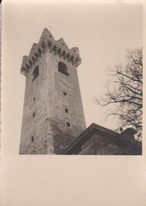 Stampa su carta fotografica di misure 10x14,5 cm. Condizioni : USATO - Stato : Buono, ordinari segni d'uso e del tempo. Altre note : Al verso località e data scritte a penna dal fotografo ignoto. Sul verso errata identificazione del luogo da parte del fotografo che scrive Torre di Augusto al posto di Torre Civica.